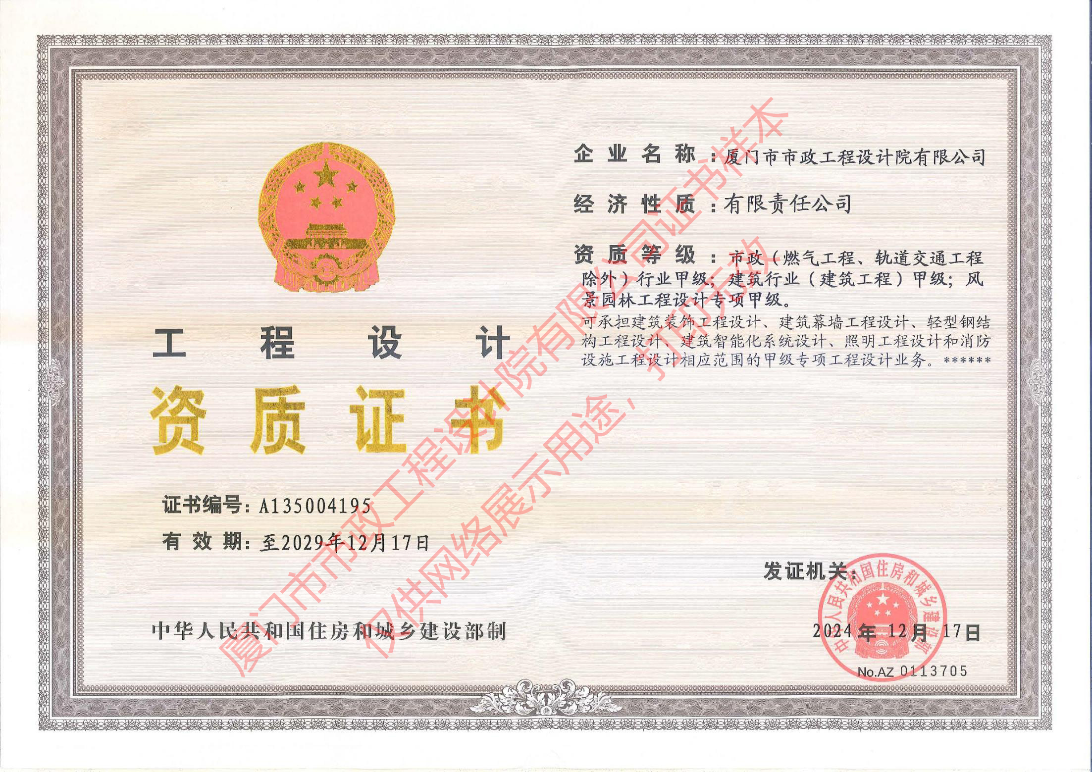 廈門市政市政、建筑、風(fēng)景園林設(shè)計(jì)甲級